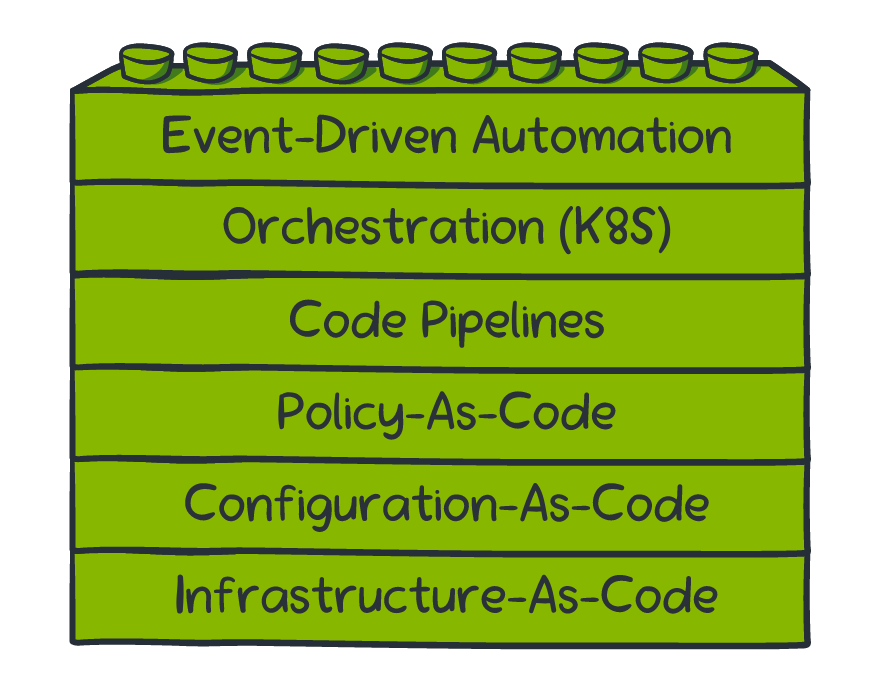 Orchestration, represented by technologies like Kubernetes (K8s), takes automation to a higher level by managing and coordinating complex workflows. Finally, the top level involves Event-Driven Automation, where actions are triggered in response to specific events, enhancing adaptability and responsiveness.